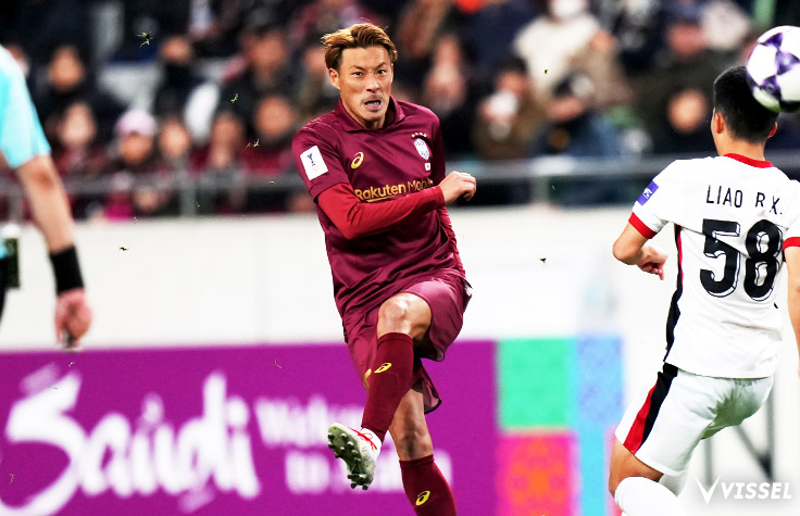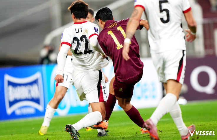 そしてもう1人、ヴィッセルにとって厄介だったのはシャドーストライカーの位置に入っていたウェイ シーハオだった。ポルトガルでのプレー経験もあり、中国代表でも10番を背負っているシーハオは、下馬評通りファウルを恐れない球際の強さを見せたが、それ以上にポジショニングのセンスを感じさせる選手だった。サイドに流れてプレーする時間も長かったが、そこでヴィッセルの選手の間に立つことで時間を作り出すといったクレバーさが目を引いた。