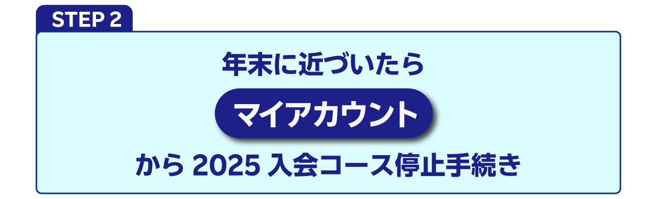 2025シーズン入会コースの停止手続きを2025年12月31日(水)23:59までにお願いします。