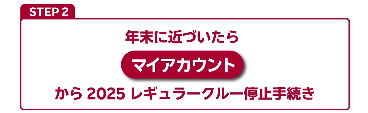 2025シーズンレギュラークルーの停止手続きを2025年12月31日(水)23:59までにお願いします。