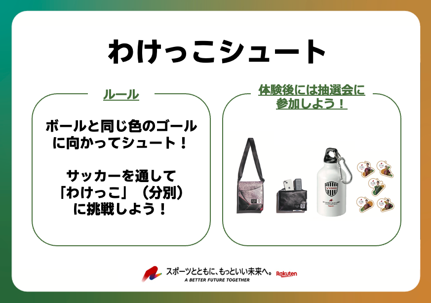 もっと見る +楽天ブース 豪華景品が当たる抽選会と、ノエスタの分別について楽しく学べる「わけっこシュート」を開催
