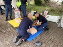 消防音楽隊の青空演奏では、「かわいいだけじゃだめですか?」の楽曲に合わせたキュートなダンスが披露され、モーヴィも一緒に楽しそうに踊る姿に思わず笑顔になりました。AED体験ブースでは実際に操作方法を学ぶことができ、いざという時の備えについて考える良い機会となりました。