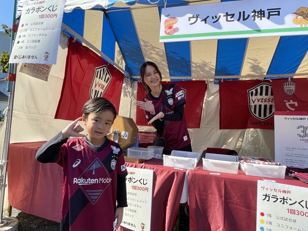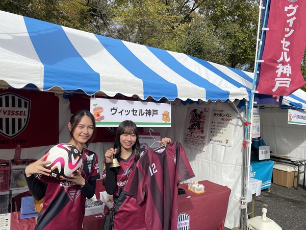 会場では、ヴィッセルのユニフォームを着ている方々の姿も見られ、丹波地域でも応援してくださっているファンの皆さまとお会いできて嬉しかったです。特にモーヴィは大人気で、一緒に写真を撮る方やサインを求める方が次々と訪れ、ブース周辺は終始賑やかな雰囲気に包まれました。