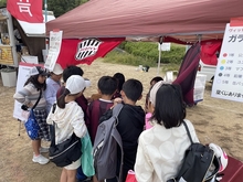 11時の開始と同時にたくさんの子どもたちがブースに駆けつけてくれました。ガラポンを回すたびに「何が当たるかな」とワクワクした表情を見せてくれる子どもたち。玉が出る瞬間、みんな真剣な眼差しでガラポンを見つめていました。マフラータオルが当たった瞬間は「やったー!」と大喜びで、その笑顔がとても印象的でした。缶バッジが当たった子は、その場でカバンにつけてくれて、とても嬉しい気持ちになりました。何度も挑戦してくれる子もいて、ブースは終始大盛り上がりでした。