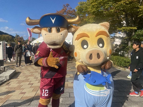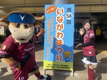 11月3日、猪名川町ふれあい公園で開催された「いながわまつり」に、モーヴィとヴィッセルセレイアが参加しました。猪名川町のイベントは初参加となります。猪名川町内から100近くの団体が集まる盛大な催しで、会場は朝から大勢の来場者で賑わっていました。なんと、開始前から「モーヴィに会いたい!」と待っていてくれた子どもたちの姿も見られ、セレイアも感激していました。