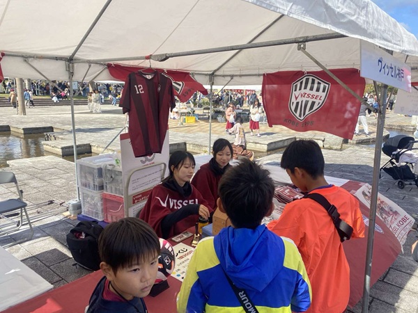 冬の訪れを感じる寒さの中でしたが、モーヴィのグリーティングには途切れることなく長い列ができ、その人気ぶりには驚きました。子どもたちはもちろん、大人の方々もモーヴィとの記念撮影を楽しんでいました。公式試合球が当たるガラポンくじも大盛況で、当たりが出るたびに大きな歓声が上がっていました。