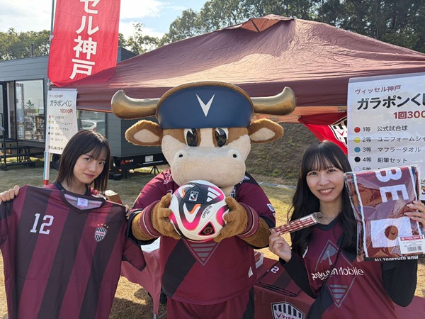 ヴィッセル神戸のブースではガラポンくじを実施。ハンドルを回すたびに、当たりを願う子どもたちの真剣な眼差しが印象的でした。景品を手にした子どもたちの笑顔も素敵で、保護者の方々も一緒に喜んでいる様子が微笑ましかったです。都倉高砂市長にもお越しいただき、イベントを盛り上げていただきました。