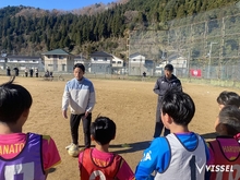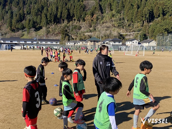 快晴の空の下、スクールコーチの指導でサッカー教室がスタート。子どもたちは元気にボールを蹴りながら、基礎技術を学びました。そして、この日のスペシャルゲストとして登場したのは、元ヴィッセル神戸の選手で、元日本代表選手としても活躍した、森岡亮太さんです。抜群のテクニックを披露すると、会場からは驚きと歓声が上がりました。