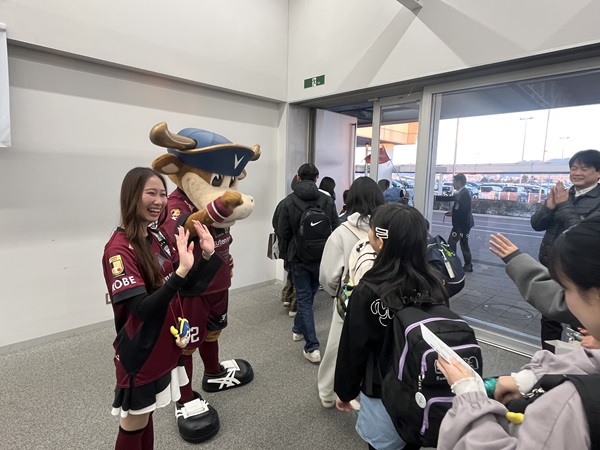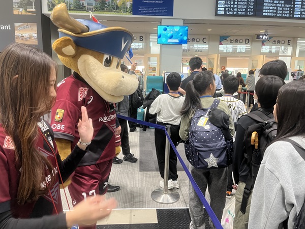 神戸空港で開催された児童養護施設の子どもたちを沖縄へ送り出す「第18回KOBE夢・未来号・沖縄」の出発式に、モーヴィとヴィッセルセレイアが参加してきました。