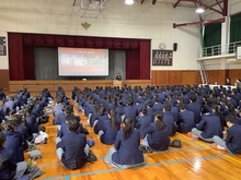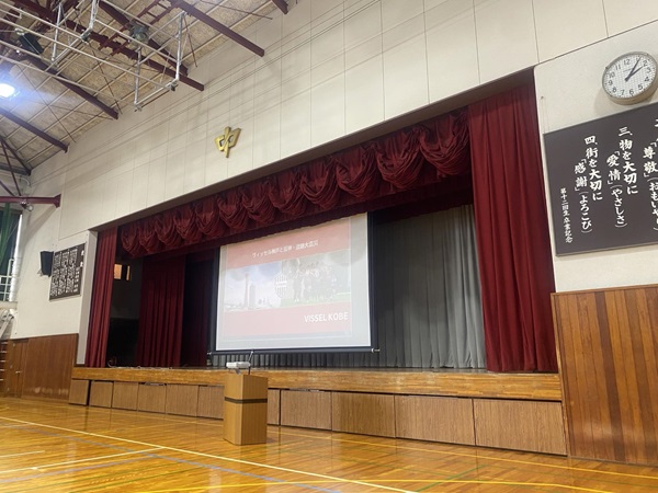講話では、ヴィッセル神戸と震災の歴史、そして私自身の体験をお伝えしました。生徒のみなさんは真剣な眼差しで耳を傾けてくれました。被害が大きかった地域だからこそ、震災の記憶を次世代へ継承し、災害への備えを怠らないことの重要性を感じます。自分自身の命を守るために、何か一つでも行動に移してほしいとお願いしました。