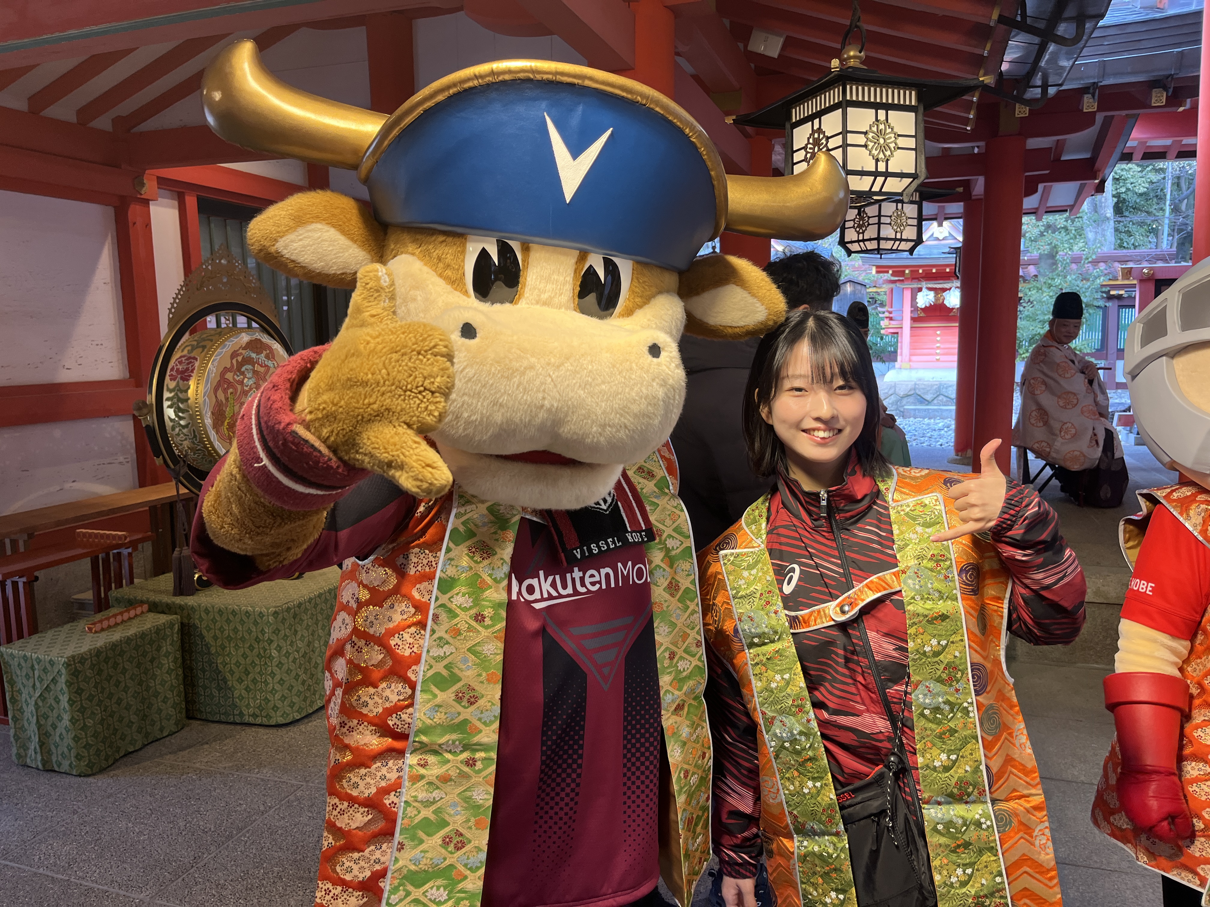 2026/02/03 生田神社節分祭 日時 2026年2月3日(火) 場所 生田神社 主催 生田神社 参加者 モーヴィ、ヴィッセルセレイア 2月3日、毎年恒例の生田神社節分祭に今年もヴィッセル神戸が参加しました! ヴィッセル神戸が参加した午前の部には約1,700人もの方々にお集まりいただき会場は熱気に包まれていました。タレントの松村邦洋さんや落語家の月亭八方さんらも参加され、華やかな雰囲気の中で節分祭が執り行われました。 みなさんの頭上に向かって豆がどんどん飛んでくる中、モーヴィも元気いっぱいに豆まきに参加!「鬼は外!福は内!」の掛け声とともに、参加者のみなさんと一緒に無病息災を願いました。