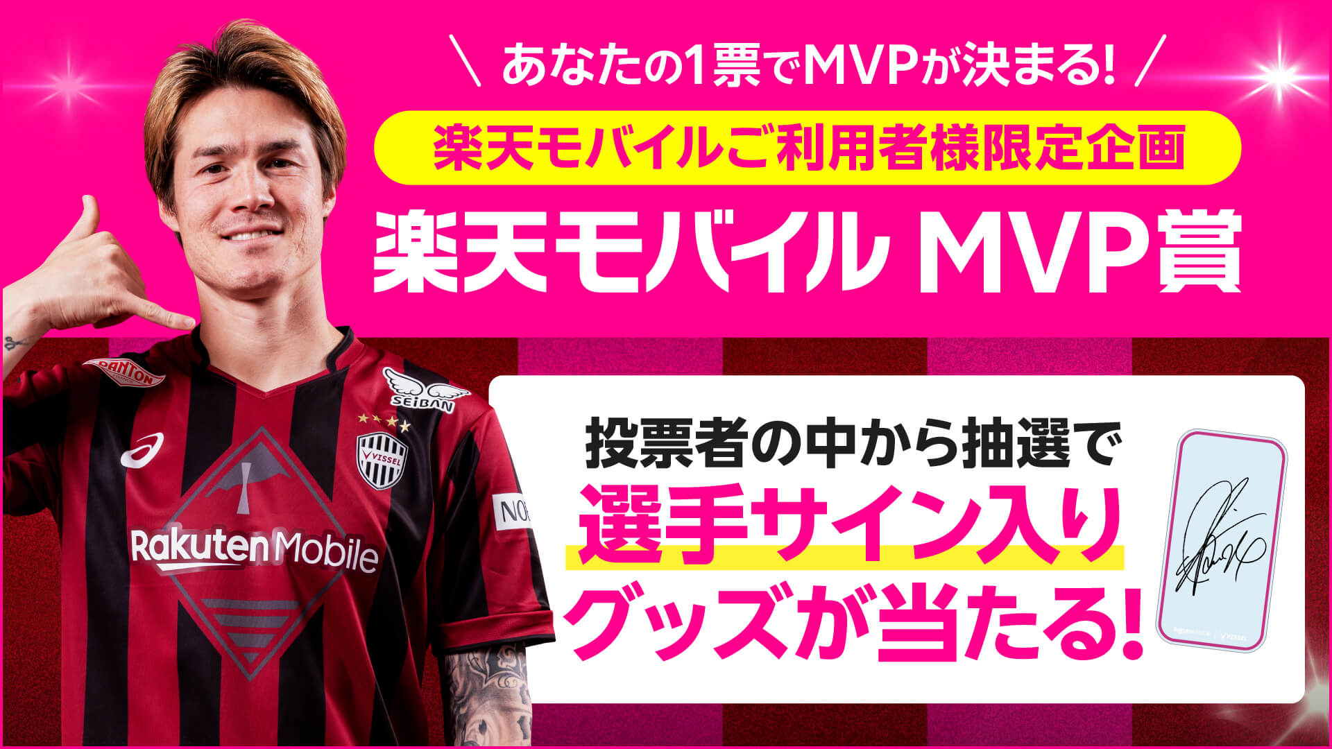 - 投票いただいた方の中から抽選で1名様に「楽天モバイルMVP賞」に選ばれた選手のサイン入りグッズをプレゼント