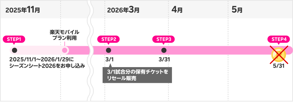 - サポーターズシートの2026シーズンシートを購入された方はシーズンシートIDと楽天モバイル契約時の楽天IDを連携させてください。