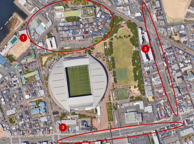 スタジアム周辺での路上駐停車は、スタジアム近隣にお住まいの方々へのご迷惑となり、また交通の妨げにもなりますのでお控えください。