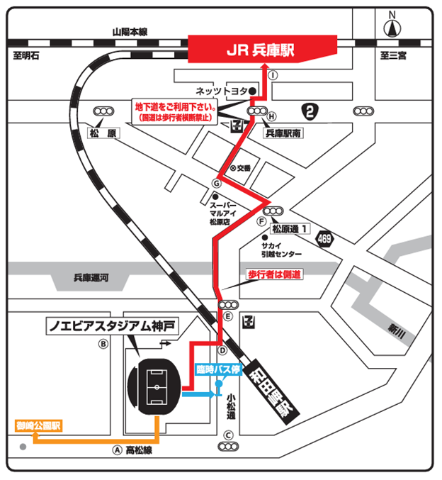 ご来場のお客さまには、改めて以下「Jリーグ及びクラブ観戦ルール・マナーの遵守」及び兵庫県が定める「受動喫煙の防止等に関する条例」をご確認いただき、すべてのお客様が安全かつ快適にご観戦いただき、合わせてスタジアム周辺にお住まいの方々へ配慮ある行動、社会一般的に正しい振る舞いをお願いします。