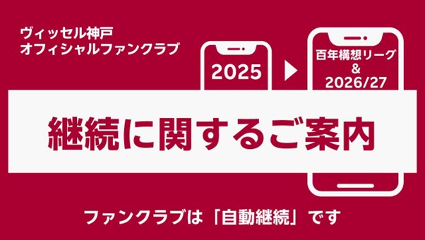 ヴィッセル神戸オフィシャルファンクラブでは、2025年11月6日(木)10:00より「百年構想リーグ+2026/27シーズン」のファンクラブ会員の新規入会の受付を開始しますので、お知らせいたします。