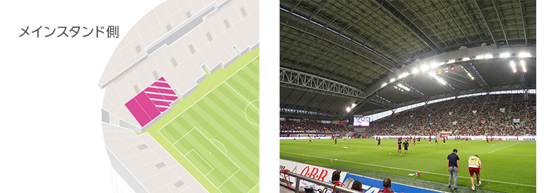 ピッチとの距離が近く、選手を間近に感じながらご観戦いただけます。