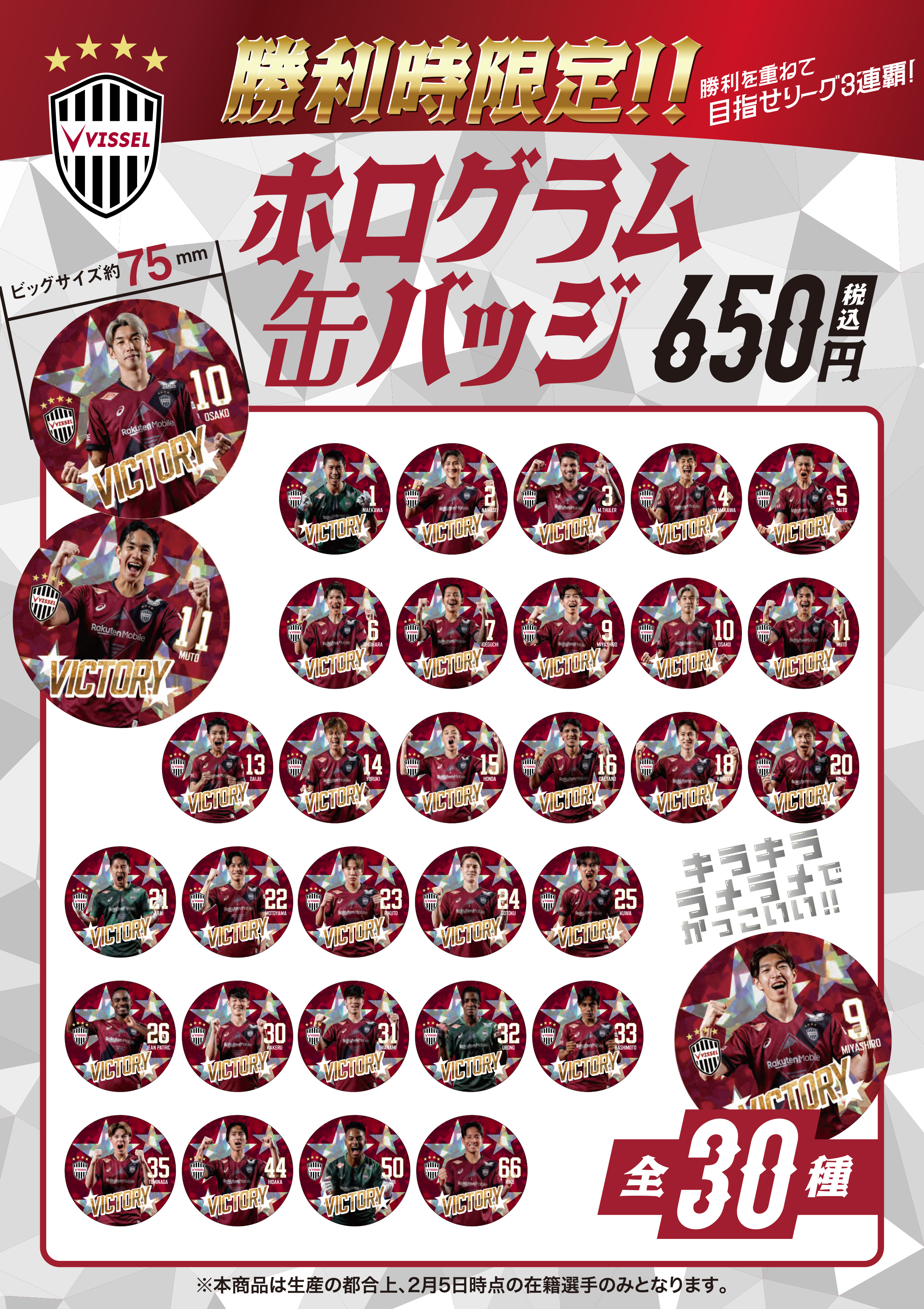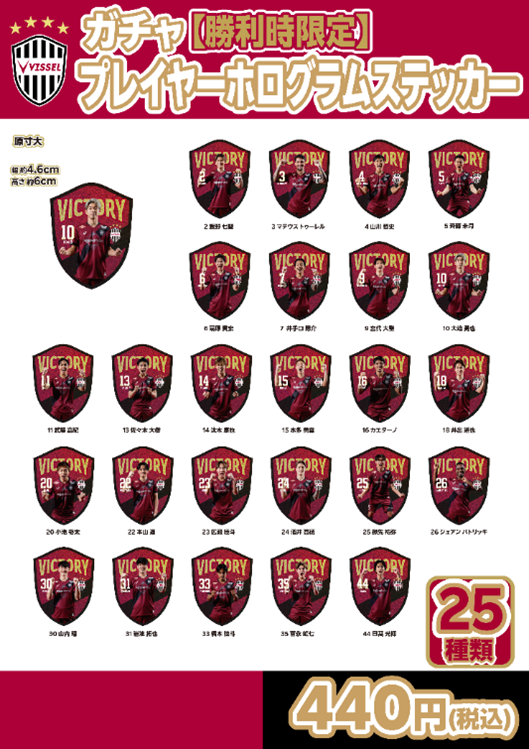 ヴィッセル神戸が勝利した場合、場外グッズショップにおいて勝利時限定ガチャを販売いたします。試合終了後もぜひグッズショップへお立ち寄りください。