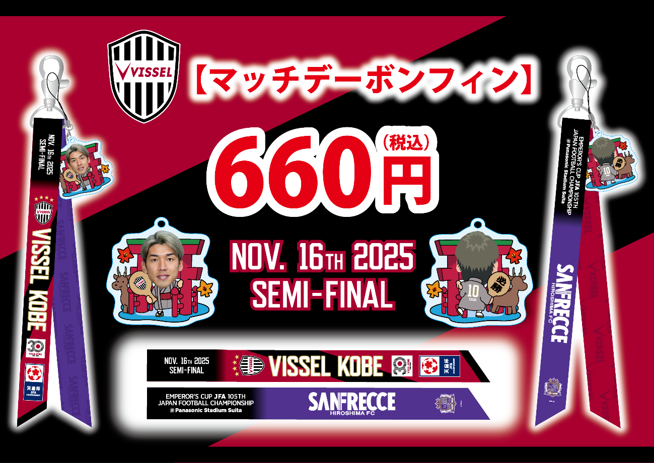 11月16日(日)に開催されるJFA第105回全日本サッカー選手権大会準決勝 ヴィッセル神戸vs.サンフレッチェ広島(15:05 キックオフ/パナソニックスタジアム吹田)において、観戦チケット情報に加え、試合当日にパナソニックスタジアム吹田に出店するヴィッセル神戸グッズショップについてお知らせいたします。