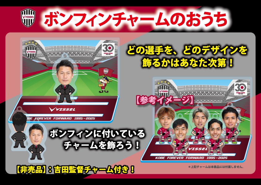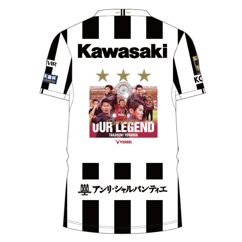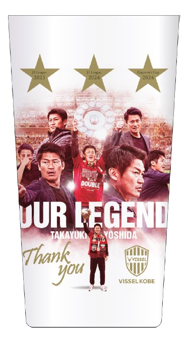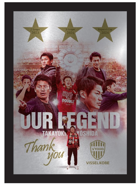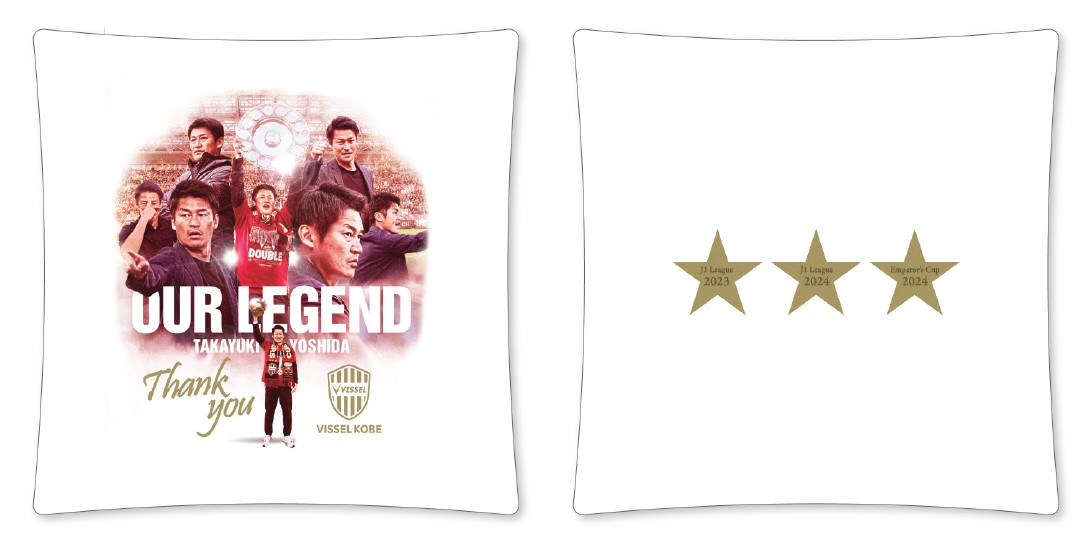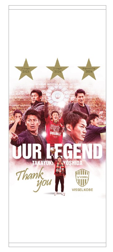ユニフォームに輝く星4つのうち、「2023 J1リーグ優勝」「2024 J 1 リーグ連覇」「2024 天皇杯優勝」を獲得。ヴィッセル神戸を新たな高みへと導いてくれた吉田監督へ、最大限の感謝とリスペクトの思いを込めたグッズです。