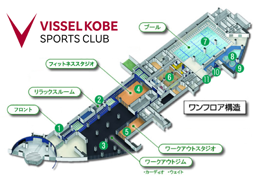 ヴィッセル神戸スポーツクラブはノエビアスタジアム神戸にあるトレーニングジム、プール、フットサルコートなど、多種多様な運動方法をお選びいただける総合型スポーツクラブです。