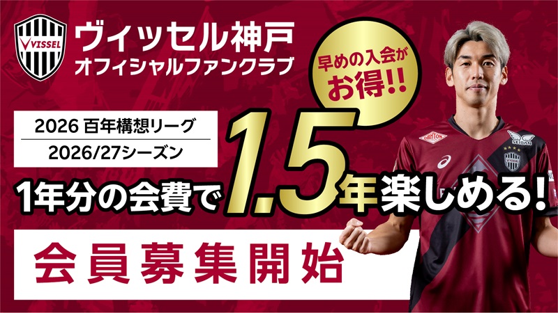 百年構想リーグ、2026/27シーズンを「ヴィッセル神戸ファンクラブ」の一員としてトモニ闘いましょう!