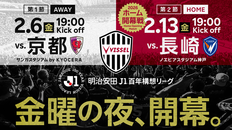 ヴィッセル神戸のホーム開幕戦となる第2節は、2月13日(金)ノエビアスタジアム神戸にて、Vファーレン長崎と対戦します。