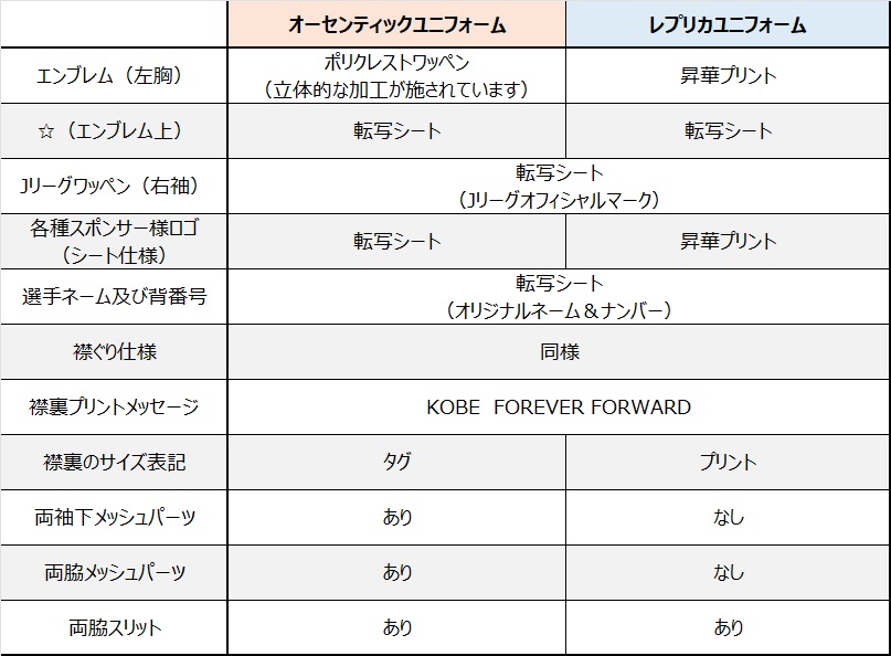 - オーセンティックユニフォーム トップス各種:全選手+No.12(VISSEL KOBE・オリジナルネーム)