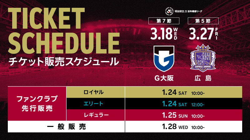 3月18日(水)vs. ガンバ大阪:ファンクラブ先行販売開始日から2月25日(水)23:59まで