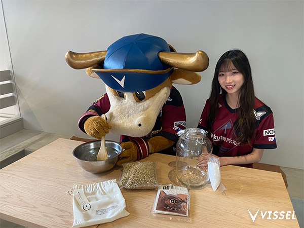 そして今回、モーヴィとヴィッセルセレイアは、特別に醤油づくり体験にも挑戦! 職人さんの指導のもと、真剣な表情で作業に取り組んでいました。自分たちで仕込んだ醤油がどのように育っていくのか、今から楽しみな様子でした。養父市の豊かな食文化に触れる貴重な体験に、二人とも大満足の様子でした。
