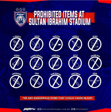 その他、Jリーグ公式戦において一般的に禁止されている行為や他人への迷惑や危害を引き起こす可能性があると主催者(AFC)・主管者(ホームチームであるジョホール・ダルル・タクジムFCおよびマレーシアサッカー協会)が判断する行為は禁止となります。