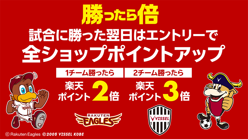 ヴィッセル神戸が試合に勝ったら翌日の楽天市場でのお買い物ポイントが2倍にUPします。