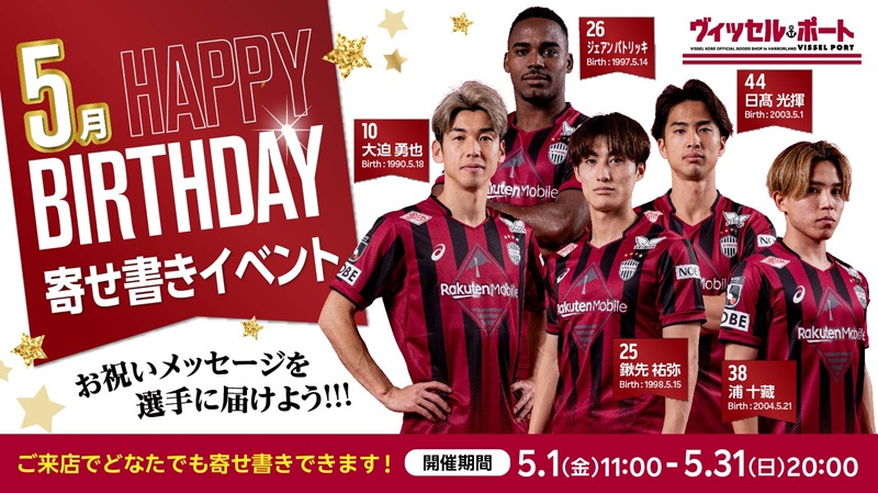 5月に誕生日を迎える選手に向けて、サポーターの皆さまからの「お祝いメッセージ」を募集するイベントを開催いたします。皆さまからお寄せいただいたメッセージは、いぶき練習場の選手たちへお届けいたします。