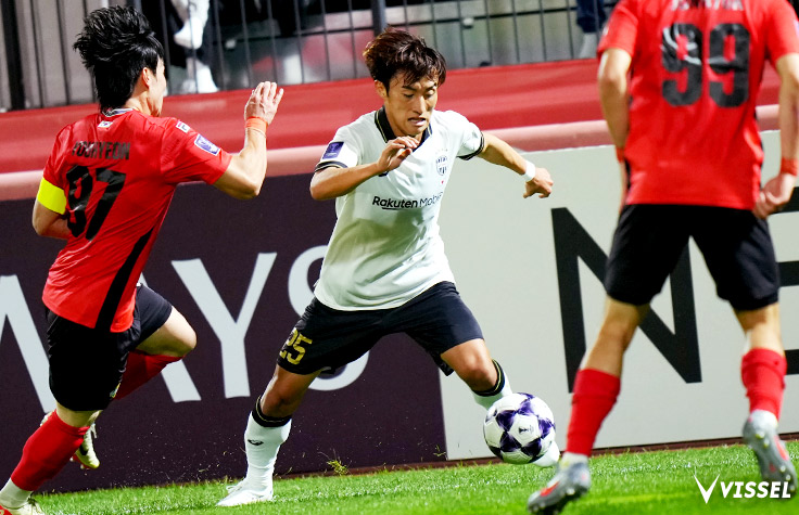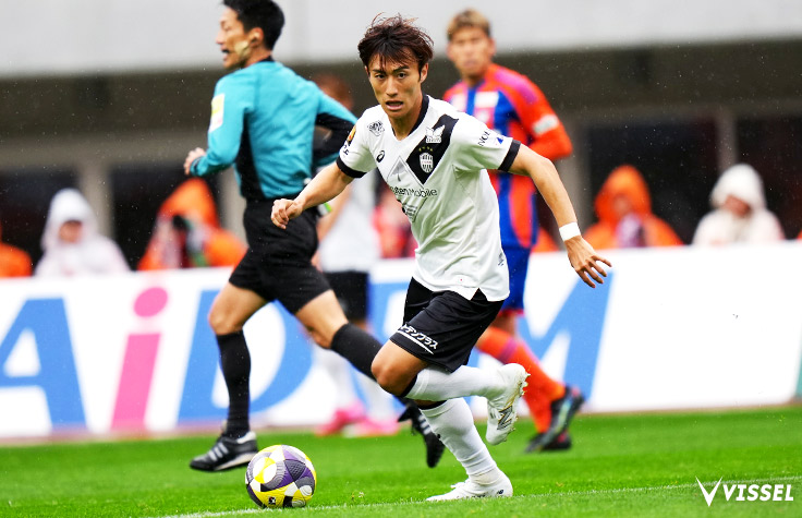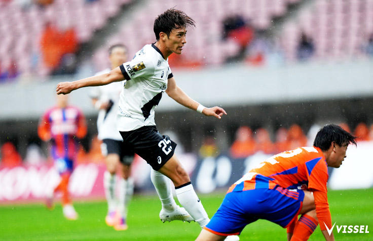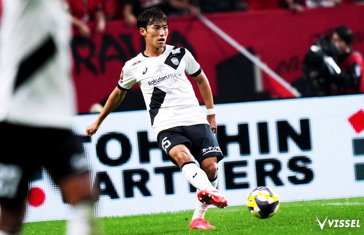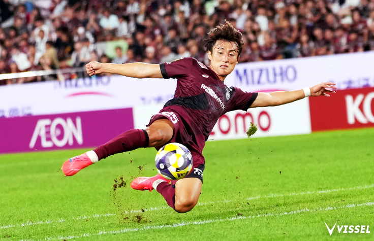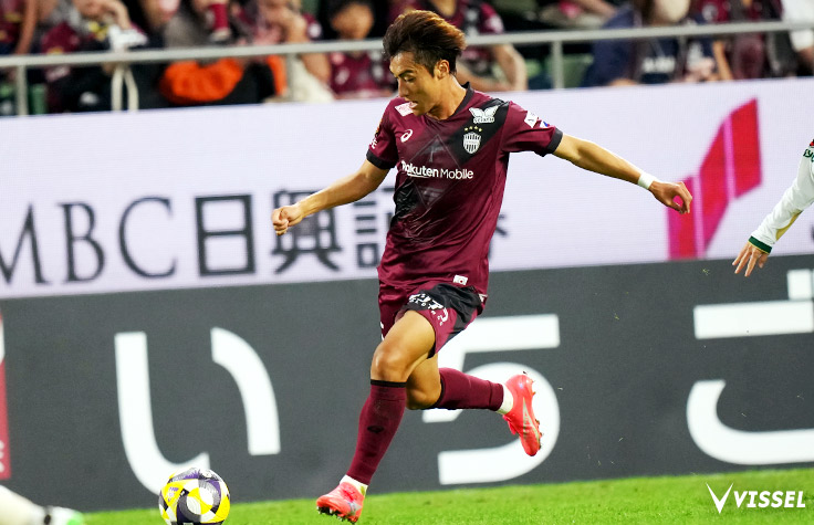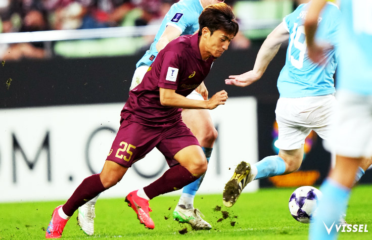 今こそ見せる“三種の神器”自身初のJ1リーグ挑戦となった昨シーズンは、序盤からベンチ入りもままならない日々が続いた。だが、ACLEなどで好印象を残すと、徐々に出場機会も増加。連覇の行方を左右する第36節の東京ヴェルディ戦では右SBで先発出場し、貴重な勝点1の積み上げに貢献した。ヴィッセル2年目の今シーズンは序盤から「守備力、ボール奪取力、ハードワーク」の三種の神器を繰り出す。