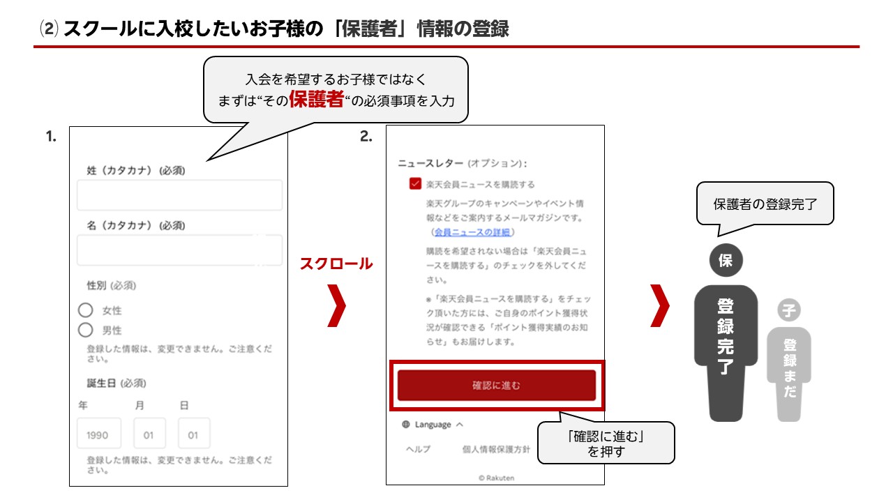 ❷スクールに入校したいお子様の「保護者」の情報を登録