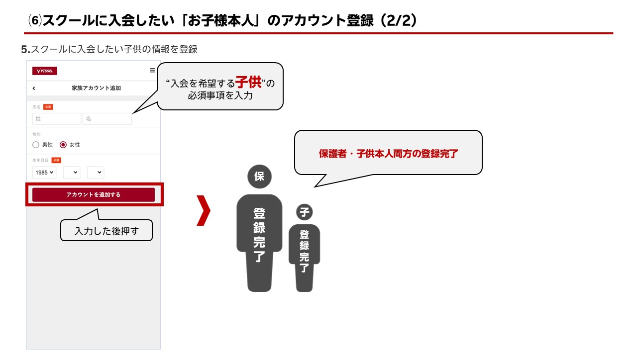 ❺スクールに入校したい「お子様本人」のアカウント登録(1/2)